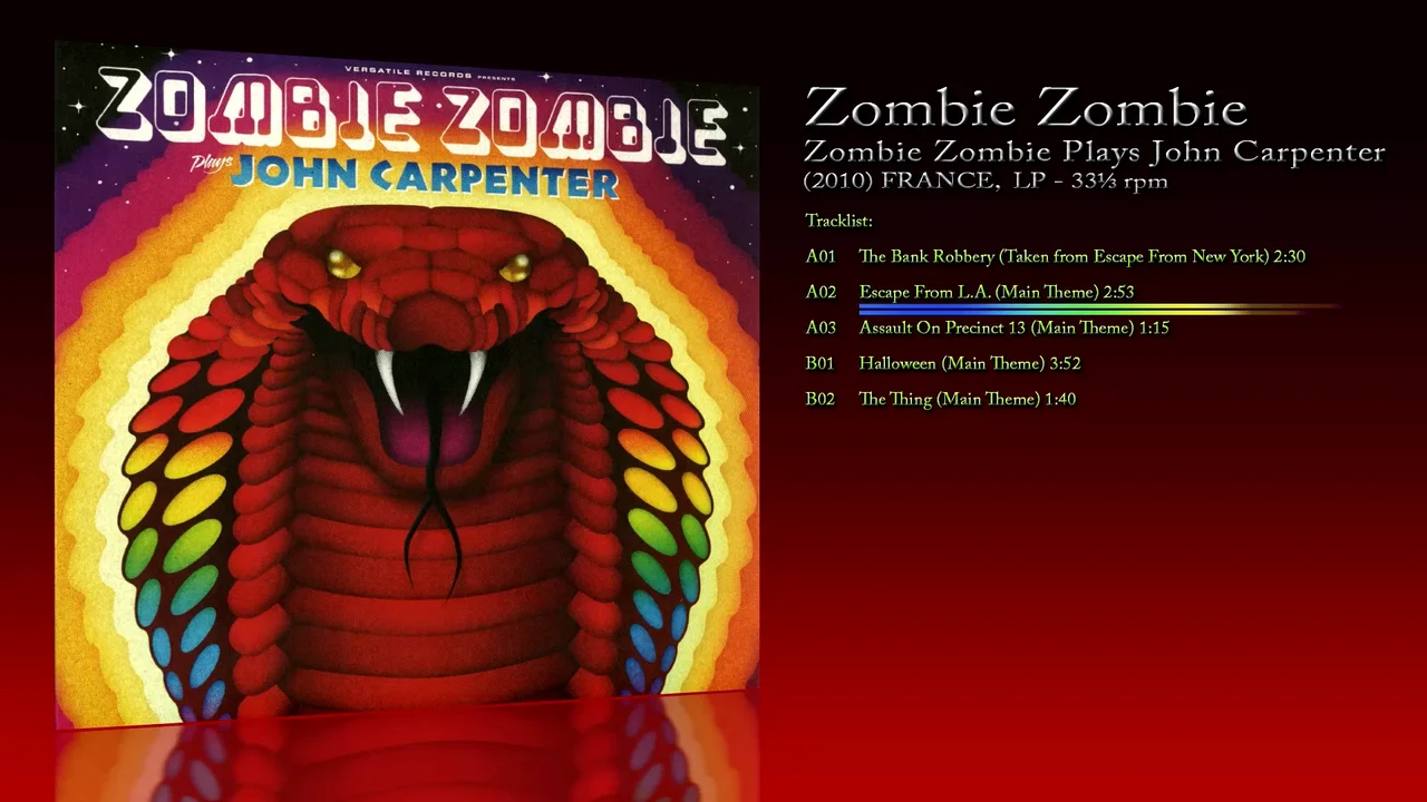 Zombie Zombie (2010) Zombie Zombie Plays John Carpenter Release: 2010 FRANCE Label: Versatile Records. Format: Vinyle, LP 33⅓ RPM, Album Genre: Electronic, Rock, Stage & Screen