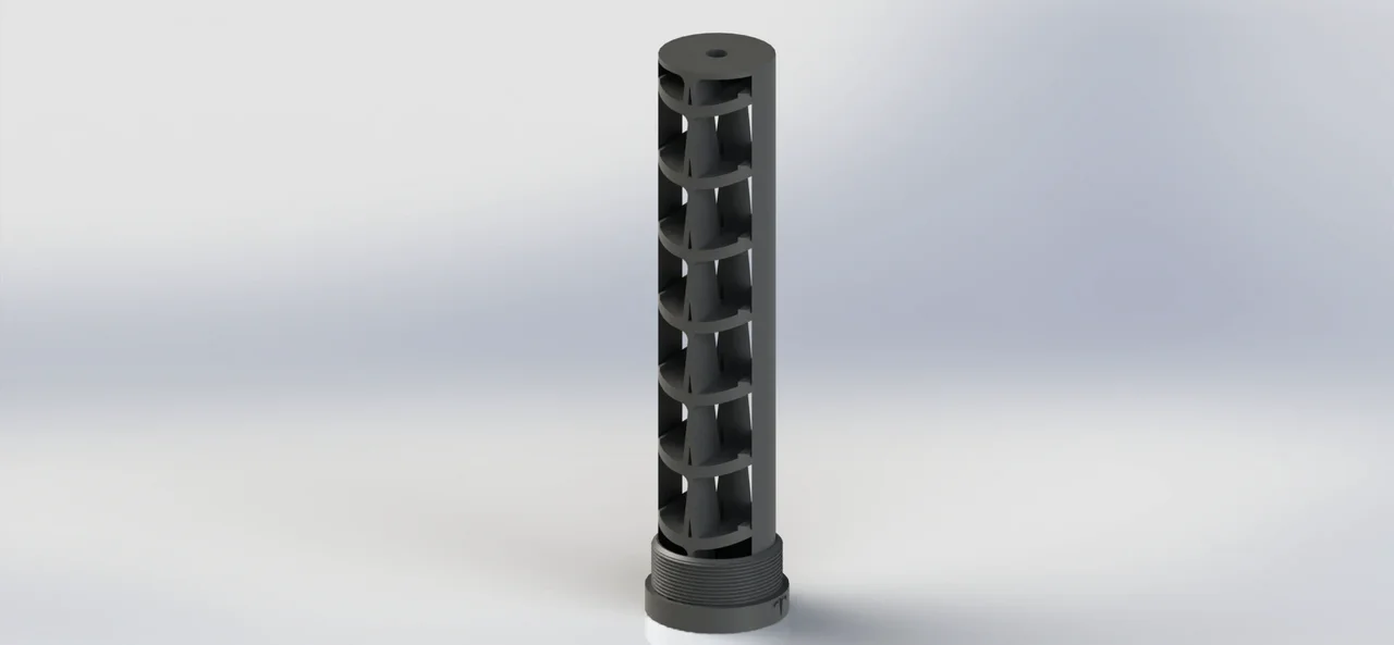 This is the empty shell that houses the inner guts of the suppressor. If possible then print all of my suppressor designs in PCCF (Polly Carbonate Carbon Fiber)
