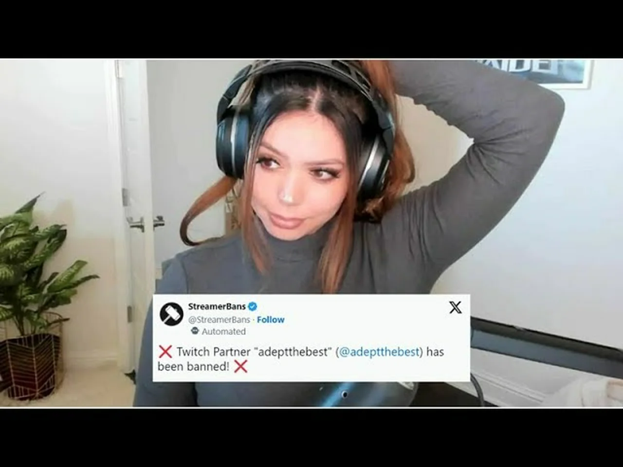 ► Sources - Dexerto – Adeptthebest Received Her First Ban Ever on Twitch Mid-Stream -- What Happened? X – StreamerBans Reddit – LivestreamFail YouTube – Adept BANNED on Twitch (Caught Live) xQc Dexerto – Adept hit with surprise ban on Twitch Dexerto – Adept accuses xQc of paying Twitch mods for sexual activities X – FearedBuck YouTube – xQc on Adept Being BANNED & EXPOSES Adept's Court Actions Reddit – r/LivestreamFail
