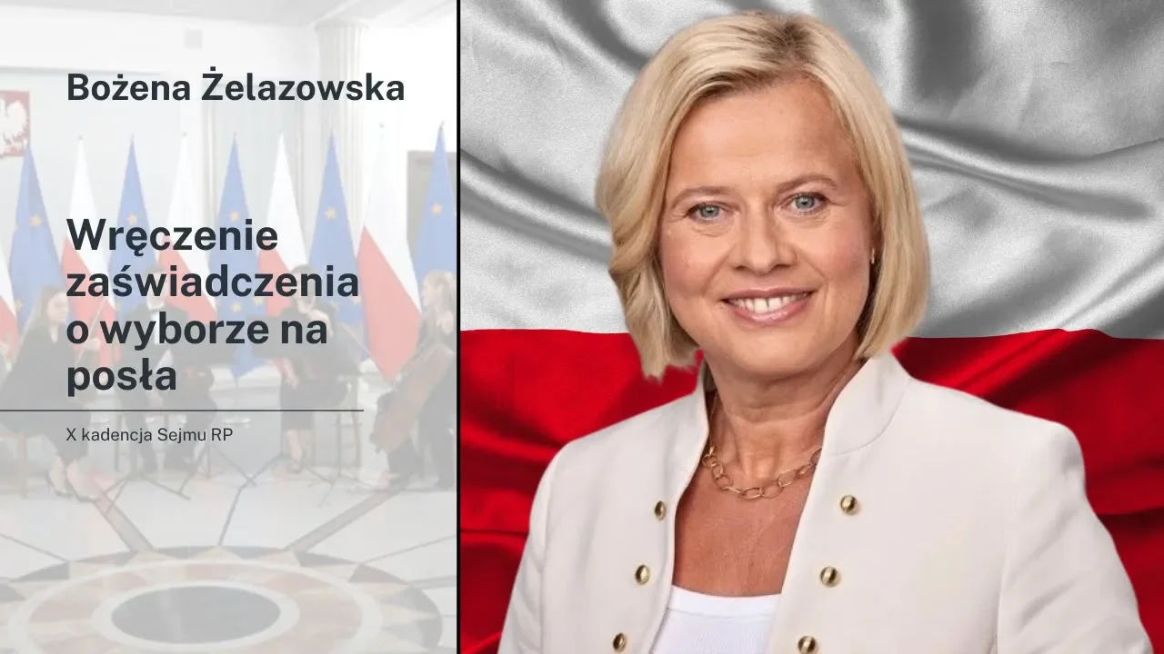 Bożena Żelazowska: Zaświadczenie o wyborze na posła X kadencji