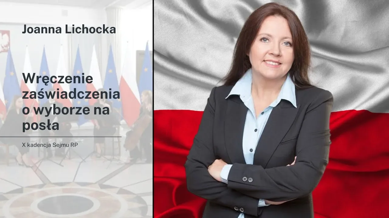 Joanna Lichocka: Zaświadczenie o wyborze na posła X kadencji