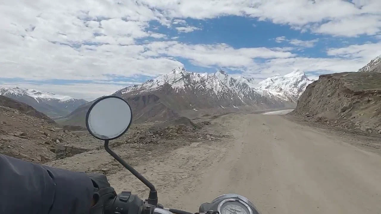ダランドゥルン氷河を眺めながらバイクで走る【北インドラダック・ザンスカールバイク旅】ロイヤルエンフィールドクラシック350 Royal Enfield classic350