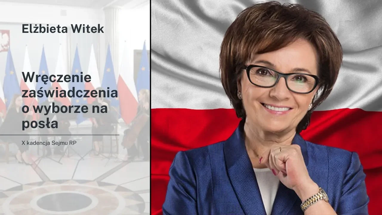 Elżbieta Witek: Zaświadczenie o wyborze na posła X kadencji