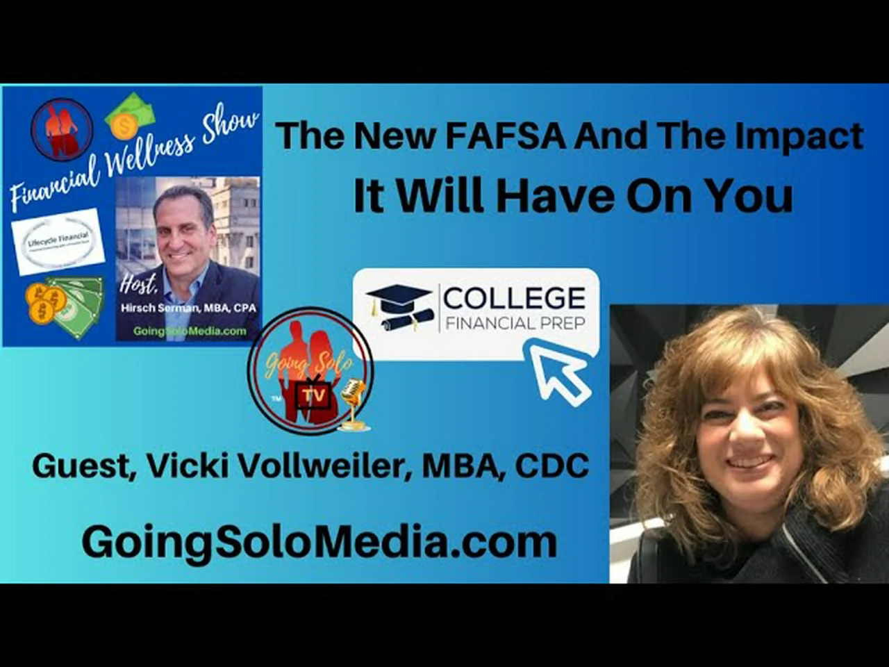The New FAFSA And The Impact It Will Have On You with Guest, Vicki Vollweiler, MBA, CDC together with Host, Hirsch Serman on the Financial Wellness Show.