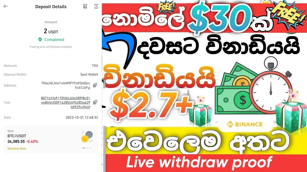 නොමිලේ හම්බෙන $30න් දවසට අවම $2+ අදායමක් withdraw කරමු || $2 LIVE WITHDRAW PROOF ??