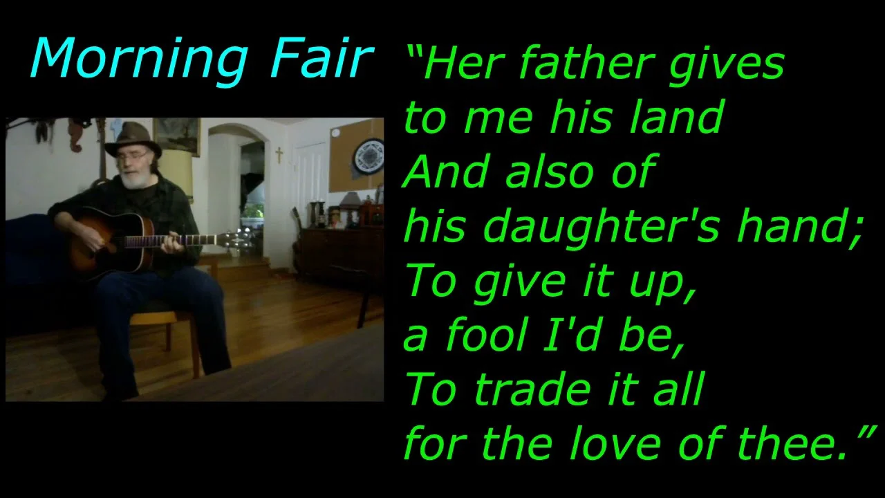 Morning Fair is a song I heard Frank Proffitt play on the banjo. He learned it from his Aunt. It`s there version of the traditional folk song. I play it on guitar, all might post a banjo version someday.