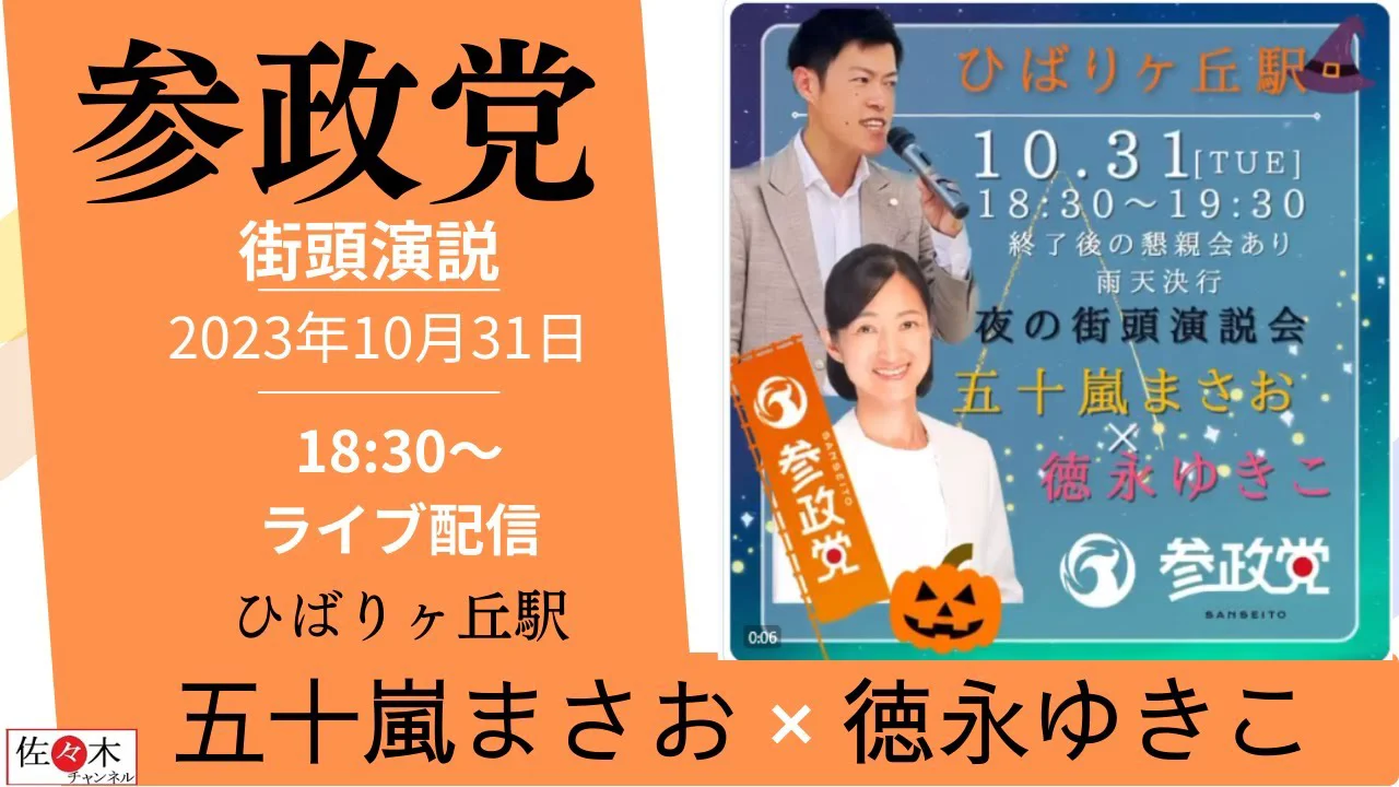 【参政党 街頭演説】ひばりヶ丘駅 2023年10月31日 #参政党 #五十嵐まさお #徳永ゆきこ