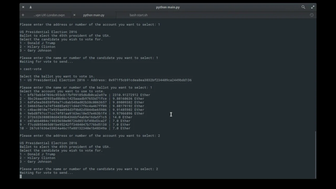 Small-scale demonstration of a functional version of Blockchain Ballot a secure voting system implemented on the Ethereum platform.