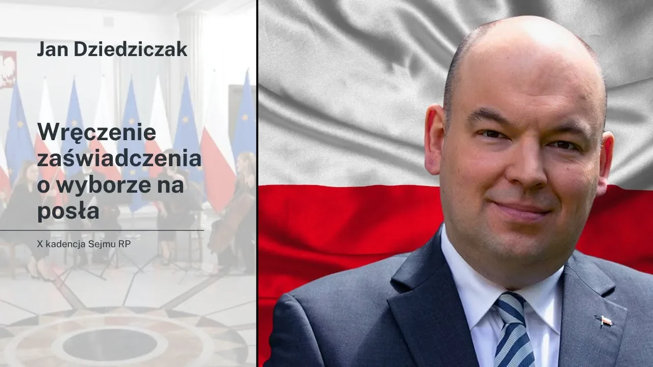 Jan Dziedziczak: Zaświadczenie o wyborze na posła X kadencji