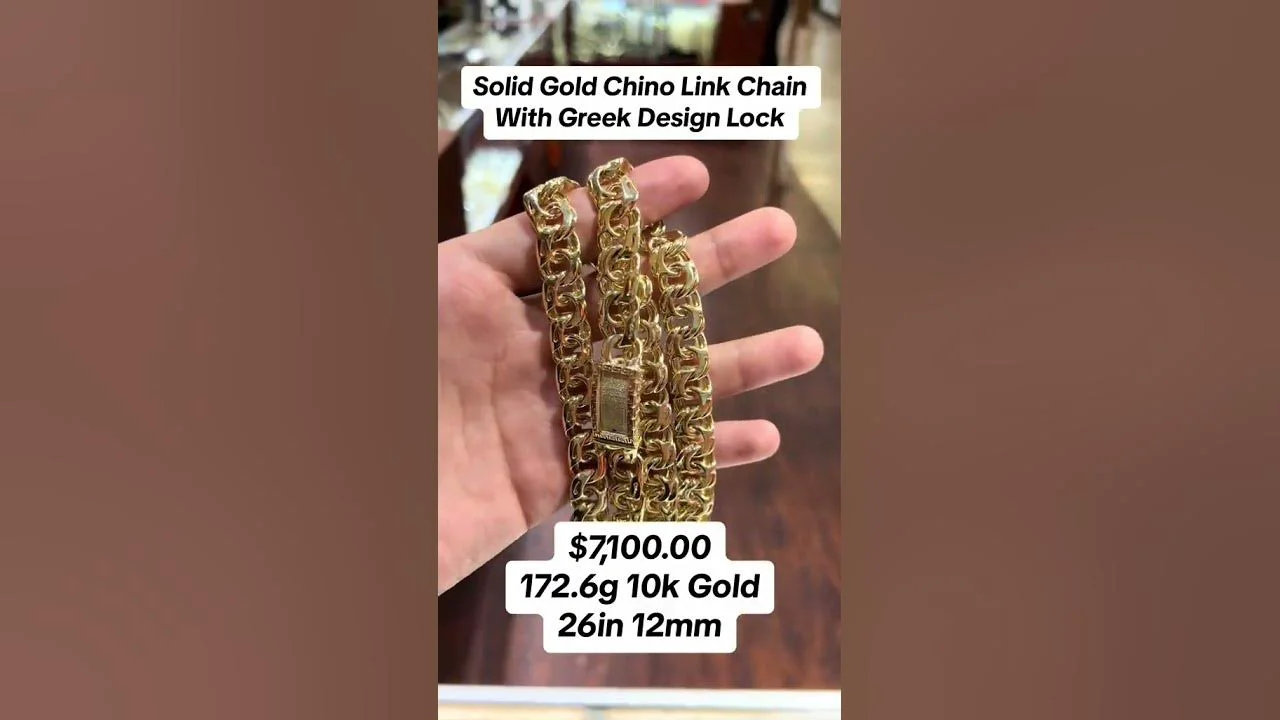 Solid Gold Chino Link Chain With Greek Design Lock #goldchains #goldchain #ropechain #diamondchains