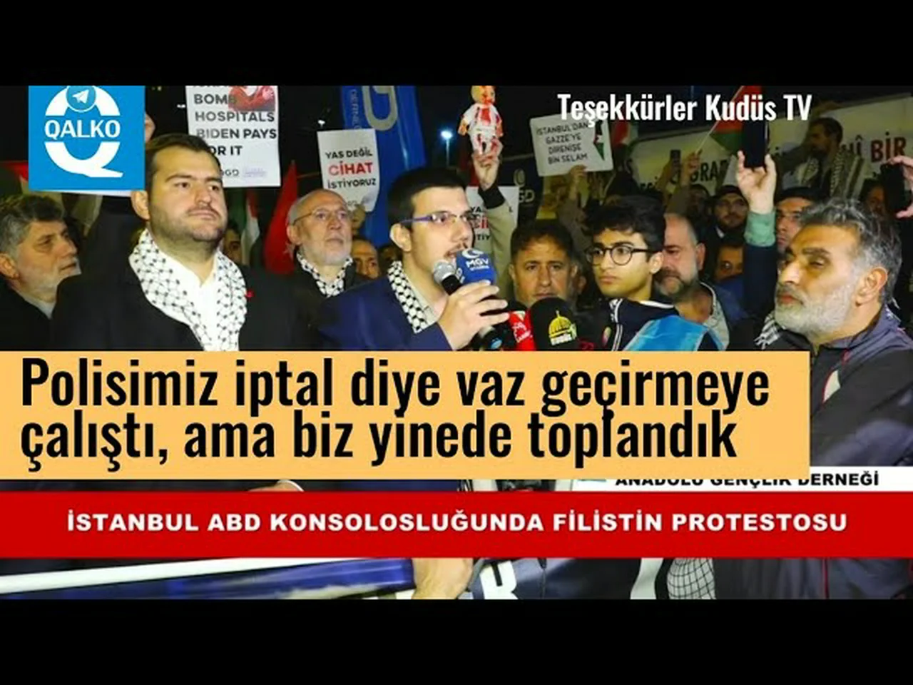Merhum Necmettin Erbakan'nın kuruduğu Anadolu Gençlik Derneği (AGD) İstanbul'da ABD Konsolosluğu önünde, ABD'yi ve İsrail'i kınayarak, Filistin Nida'ları attılar.