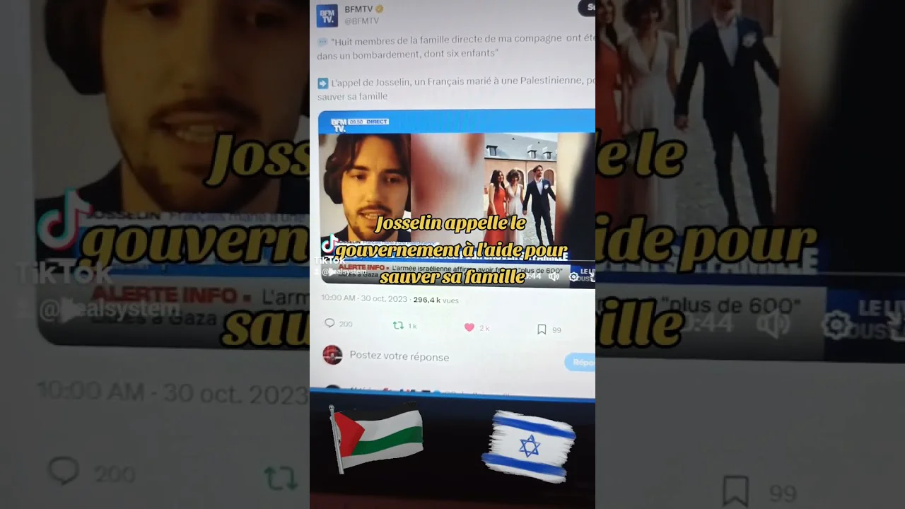 Josselin un français marié à une palestinienne témoigne : huit membres de la famille directe de ma compagne ont été tués dans un bombardement, dont 6 enfants. Il demande l'aide du gouvernement français. #gaza #france #israel #palestine ... https://www.youtube.com/watch?v=kc068kyZdpE