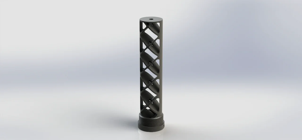 This is the empty shell that houses the inner guts of the suppressor. If possible then print all of my suppressor designs in PCCF (Polly Carbonate Carbon Fiber)