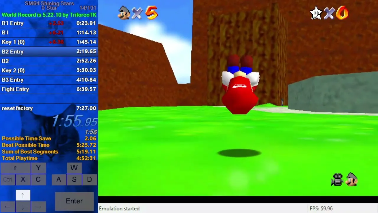 Not an easy star, but it became way more enjoyable once I figured out some strats. At first I couldn't get any attempts past the whomp red, but that one wasn't too bad after coming up with the current strat. Also found a very consistent way of doing the second red as well. Decided to do the firsty red late, which saved quite a bit of time every attempt. With those strats the star was pretty fun, since it has decently fast movement to get to the hard part. Dying 9 times to the end and a few more times right before the 5th red was still frustrating tho.