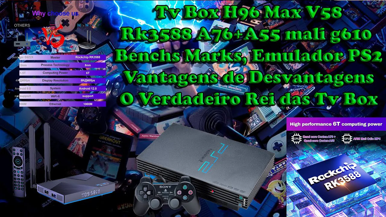 Tv Box H96 Max V58 Rk3588 - Jogos de Ps2 no Aether sx2 e Benchs Marks.