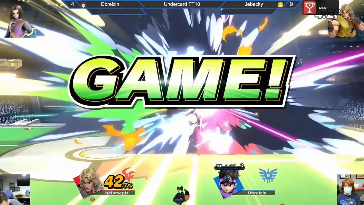Dbreizin and jabecky had a First to 10 grudge match on the undercard of SteakFox's (creator of Buttons on Wake-Up) inaugural Super Smash Bros Ultimate fight-card. The 10-4 score belies how close each game was.