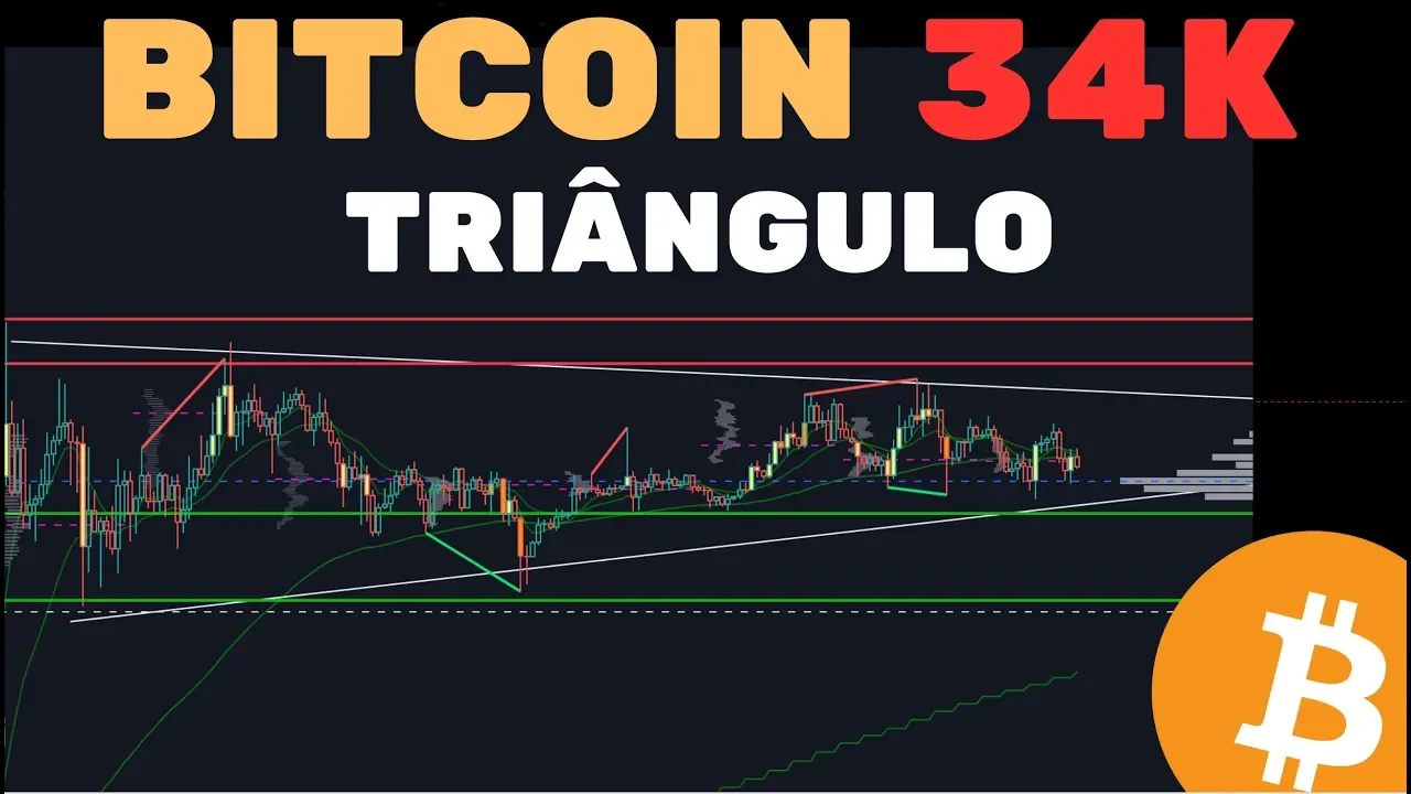 BITCOIN LUTA PARA SEGURAR 34K: TRIÂNGULO + O QUE ESPERAR DE AMANHÃ? - Análise Técnica/Sentimento